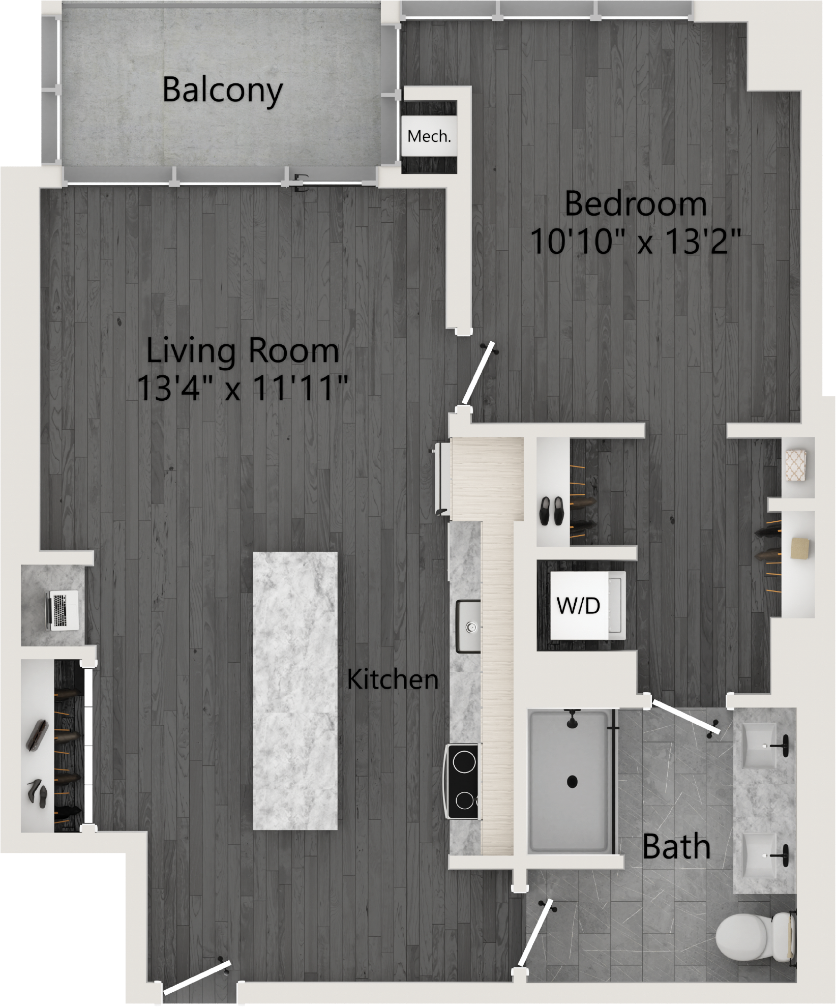 All floor plans are artist’s renderings for illustrative purposes and may not be to scale. All dimensions and distances are approximate and may vary. All photos and views are approximate representations and may not depict actual product. Not all features are available in every apartment. All specifications, availability, and pricing are subject to change.