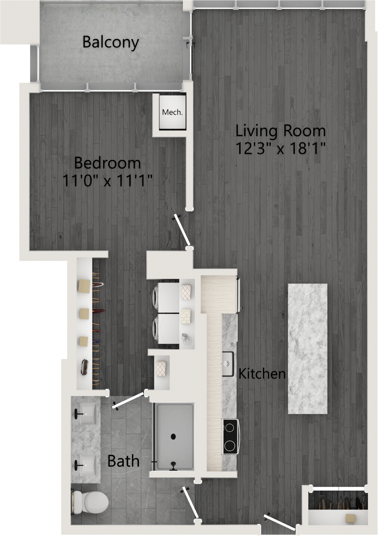 All floor plans are artist’s renderings for illustrative purposes and may not be to scale. All dimensions and distances are approximate and may vary. All photos and views are approximate representations and may not depict actual product. Not all features are available in every apartment. All specifications, availability, and pricing are subject to change.
