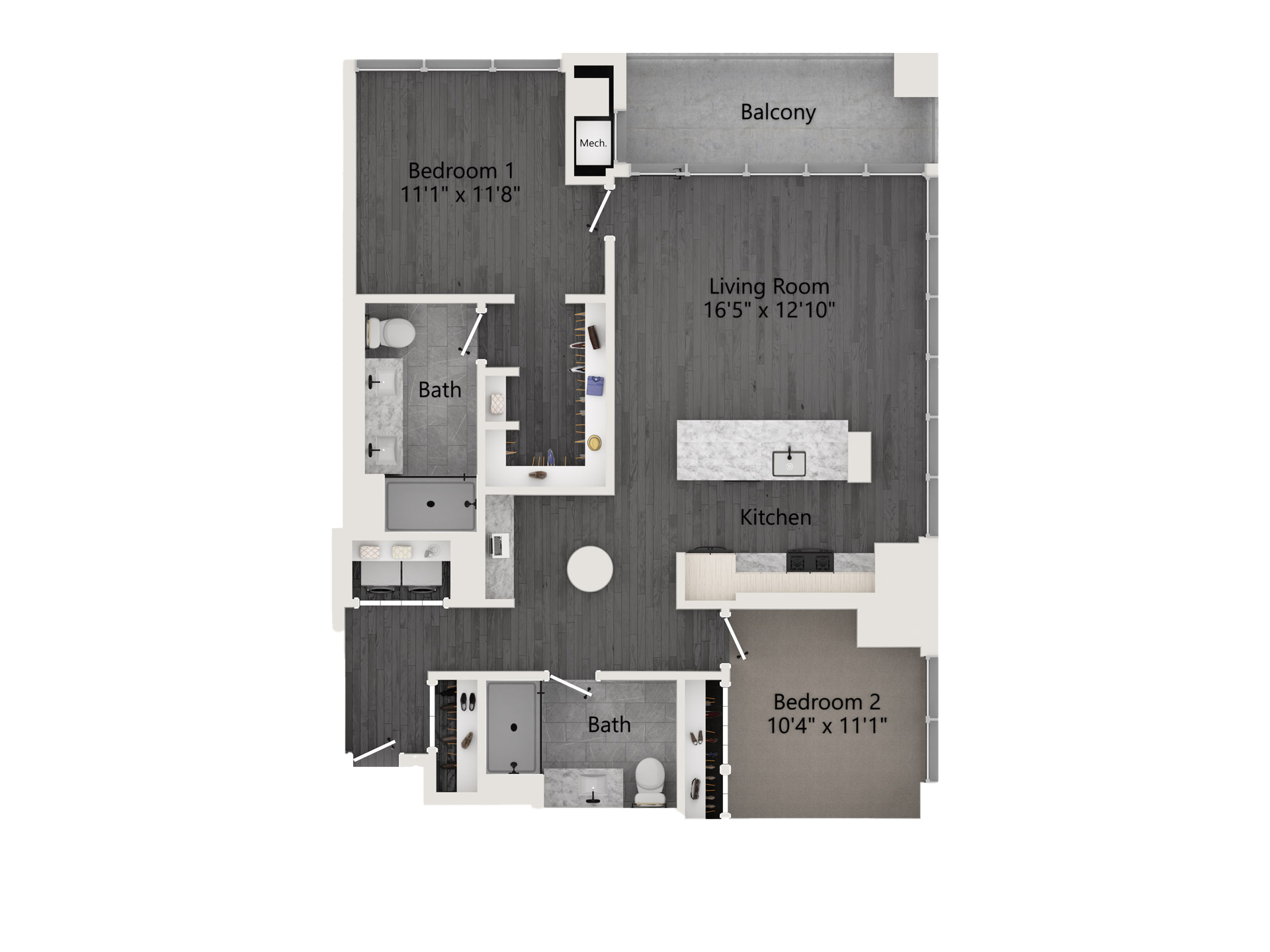 All floor plans are artist’s renderings for illustrative purposes and may not be to scale. All dimensions and distances are approximate and may vary. All photos and views are approximate representations and may not depict actual product. Not all features are available in every apartment. All specifications, availability, and pricing are subject to change.