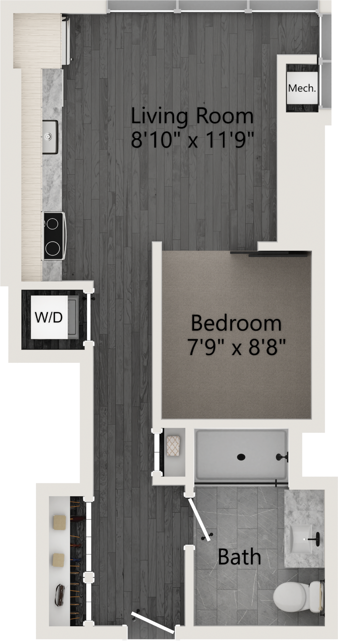 All floor plans are artist’s renderings for illustrative purposes and may not be to scale. All dimensions and distances are approximate and may vary. All photos and views are approximate representations and may not depict actual product. Not all features are available in every apartment. All specifications, availability, and pricing are subject to change.